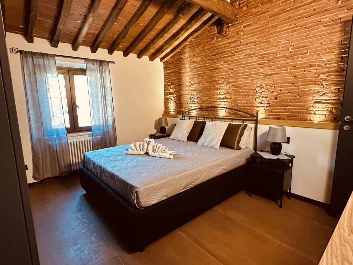 Gli interni raccontano la storia del borgo: muri in pietra a vista, soffitti alti e arredi in legno massello creano un’atmosfera accogliente e ricca di charme, cucina dalle linee minimal ma con tutti i confort necessari arricchita